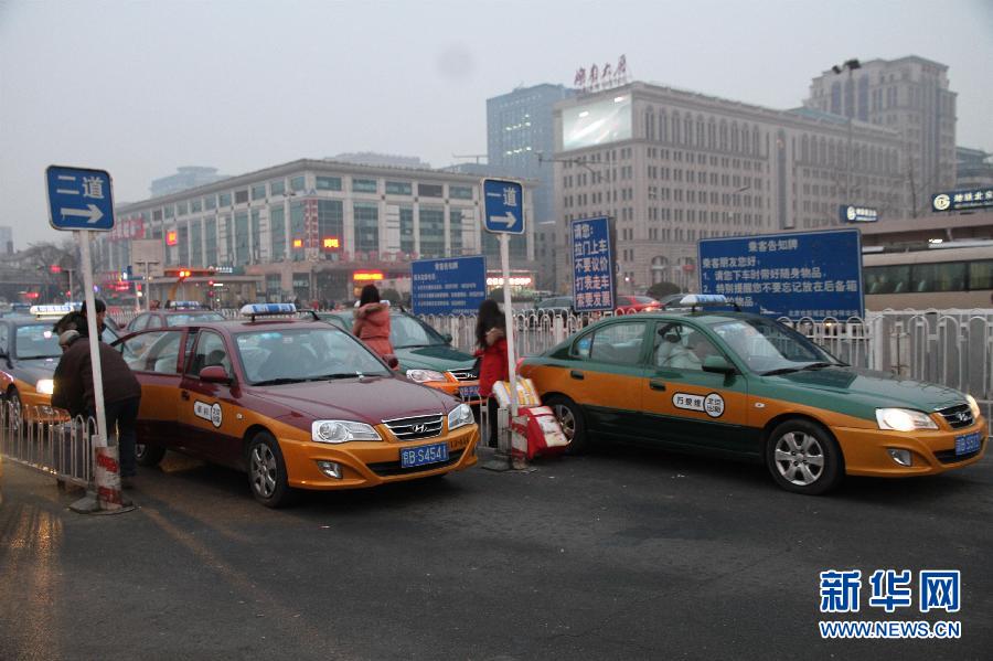 1月15日,乘客在北京火车站准备乘坐出租车。