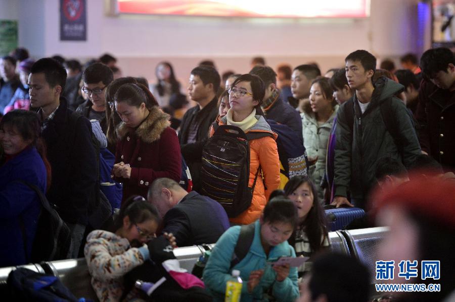 1月15日,旅客们在南昌火车站候车厅内候车,其中大部分为学生。 1月13日至15日,江西省各大高校陆续放假,由于“闰九月”使得今年农历新年比往年晚许多,许多高校寒假长达一个半月,也被称为“史上最长寒假”。在南昌火车站,学生客流高峰带来的人流堪比春运,据铁路部门预计,将有28万学生旅客经由南昌火车站乘车。新华社记者周密摄