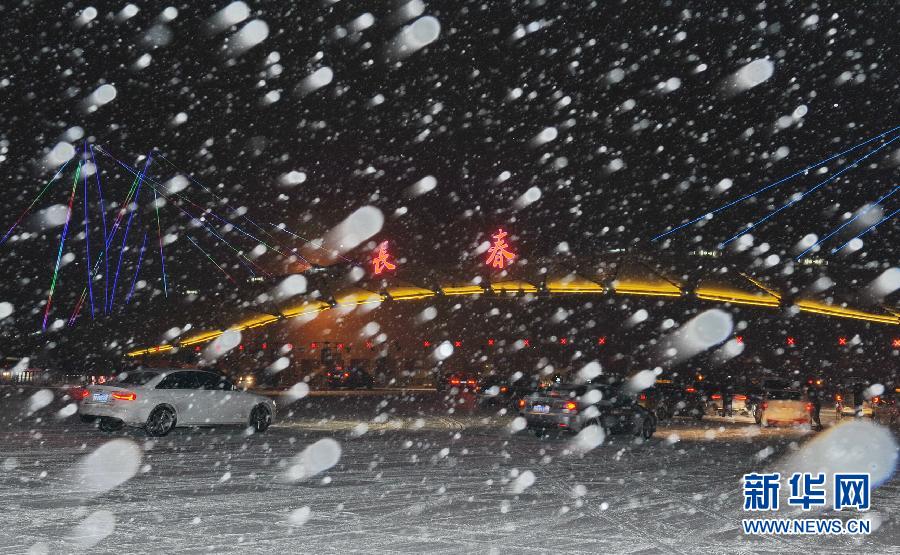 1月18日,因降雪影响,高速公路长春东入口关闭,车辆在路边等待通行。新华社记者 张楠摄