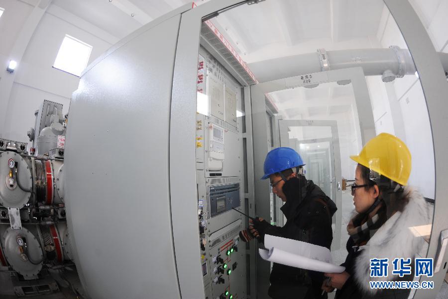 1月18日,工程技术人员在江苏扬州市北郊的220千伏凤来智能变电站内验收刚完成安装的智能电网控制设备。当日,扬州市首座220千伏智能变电站完成智能设备安装,进入调试验收阶段,预计春节前投入运营。该市计划2015年上半年投产另外两座大型变电站——500千伏扬州北智能电站、220千伏蒋王智能变电站全部进入设备安装阶段。江苏扬州目前已投入运营的智能变电站超过10座,成为城市建设发展的新支撑。 新华社发(濮良平 摄)