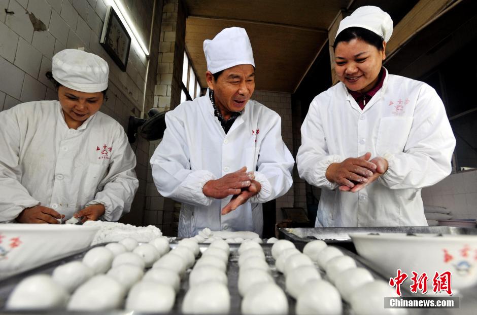 图为搓汤圆也有技巧,不然一煮就开花。 张畅 摄
