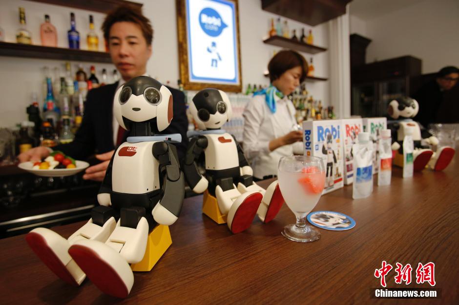 近日,日本东京,“Robi cafe”举办媒体预展,顾客可在享受餐饮的同时,与智能机器人互动。