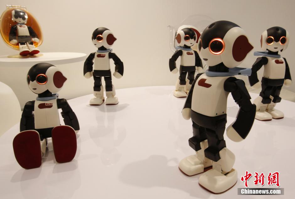 近日,日本东京,“Robi cafe”举办媒体预展,顾客可在享受餐饮的同时,与智能机器人互动。