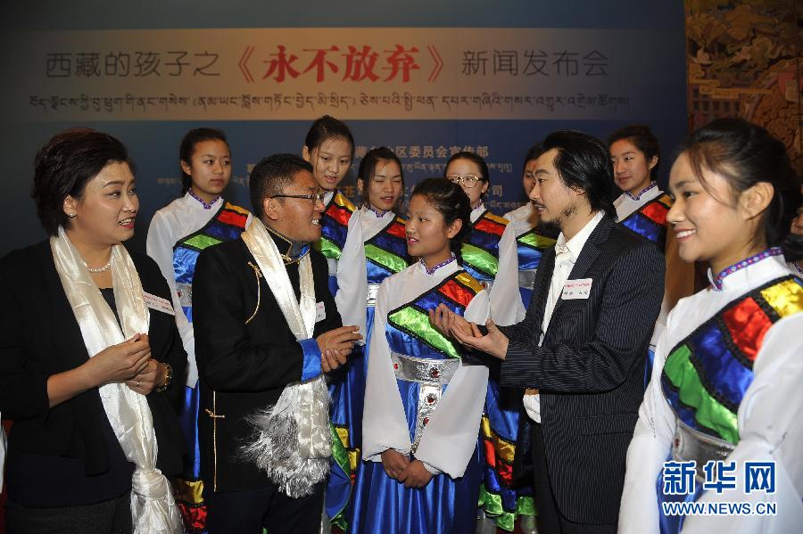 1月18日,公益电影《永不放弃》的主创人员在新闻发布会后与在京求学的藏族学生交流。当日,公益电影西藏的孩子之《永不放弃》在北京举行新闻发布会,宣布该片已完成剧本创作,进入角色遴选阶段。影片《永不放弃》根据藏族青年作家鹰萨·罗布次仁创作的小说《西藏的孩子》改编而成,讲述西藏孩子在内地求学成长的故事,展现了雪域高原浓郁的风土人情及西藏与时俱进的发展变化。新华社记者 鲁鹏 摄
