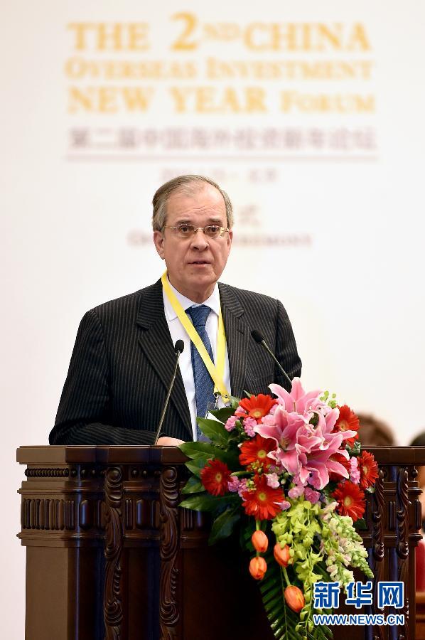 当日,由中国投资协会、中国国际文化传播中心主办的第二届中国海外投资新年论坛在北京人民大会堂开幕。本届论坛为期两天,主题为“丝路五通”,邀请了与海外投资相关部委的领导、各国驻华使馆代表和部分在海外成功投资的企业代表参会,力求搭建一个中国与世界探讨和实践国际投融资合作的重要平台。新华社记者 李鑫 摄