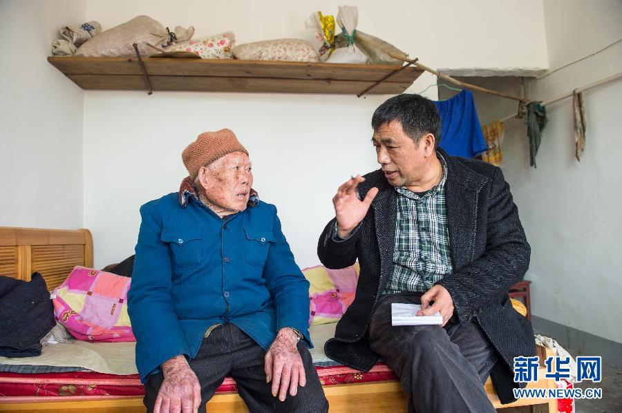 1月12日,刘明勇(右)在金竹村五保户之家里和五保户聊天,询问他们的需求。刘明勇是重庆市巴南区鱼洞金竹村远近闻名的老板,靠着搞个体运输发家致富,一年赚个一百万元是很轻松的事。可就在他生意做得风生水起的时候,村里的老书记找到他,让他回村里主持工作。 1963年,刘明勇就在这个村子出生,长大。在外漂泊了15年,当他再次回去时,家乡似乎还是那个样子,破旧的房屋,泥泞的街道,古老的水井。刘明勇看在眼里,急在心里。2007年底,刘明勇接受了金竹村当时的老书记朱本权的邀请回到家乡,被村民选为村书记。 “当了村主任,就要把担子挑起来。”刘明勇下定决心,用5年时间改变全村人的生活状况。 新华社记者 刘潺 摄
