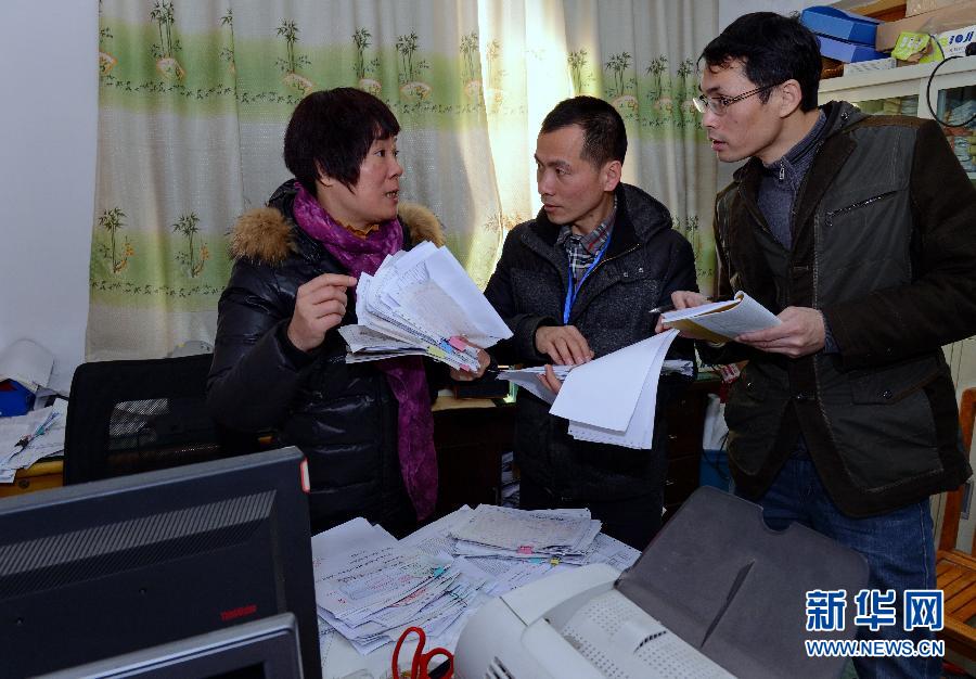 1月14日,闽侯县纪检监察人员(右一、右二)在甘蔗街道财务中心根据税务部门提供的公款消费餐饮开票记录进行报销情况核查。当日,福建省闽侯县纪检监察人员深入税务部门,通过税收电子征管系统,查阅餐饮税务开票记录,严查各级党政机关、事业单位、国有企业的公款消费情况。2014年以来,闽侯县共查处涉及公车私用、公款吃喝、接受服务对象礼金等违反八项规定的案件11件11人。新华社记者 张国俊 摄