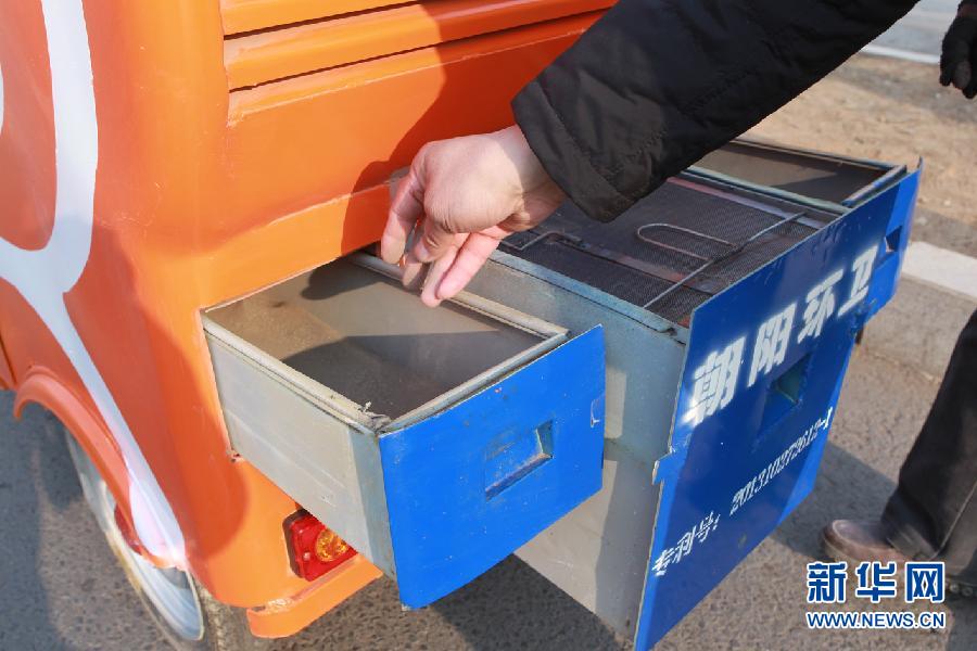 1月14日,辽宁省朝阳市一名环卫工人在清理“自吸式垃圾分解机”里的垃圾。当日,首批30台“自吸式垃圾分解机”在辽宁省朝阳市正式投入使用。该垃圾清扫分解机是在环卫清扫一线工作多年的劳模夏志国历经5年研发而成。该清扫机安装了锂电池,提升了清扫保洁效率,减轻了环卫工人工作强度,以吸代扫,减少了二次扬尘。新华社发(仇一军 摄)