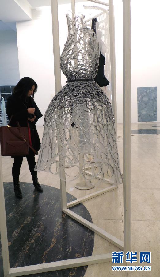 1月14日,观众在“中韩时装艺术交流展”上观赏中韩两国学生在高校时装设计领域教学及实践的作品成果展。当日,“中韩时装艺术交流展”在北京中央美术学院举行。本次展览以“间”为主题,将集中展出韩国弘益大学和中央美术学院的学生以及来自全国其他10所艺术院校教师创作的作品。新华社记者 李明放 摄