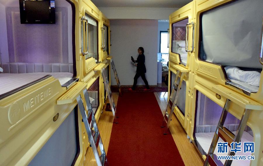 这是郑州市某小区内的“胶囊”旅馆(1月15日摄)。近日,起源于日本的“胶囊”旅馆在河南郑州悄然兴起。床铺、网络电视、无线网络,两平方米左右的舱房内一应俱全,前来住宿的客人以学生、旅行者及求职的年轻人居多。新华社记者 李安摄