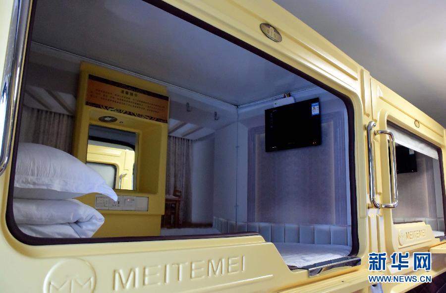 近日,起源于日本的“胶囊”旅馆在河南郑州悄然兴起。床铺、网络电视、无线网络,两平方米左右的舱房内一应俱全,前来住宿的客人以学生、旅行者及求职的年轻人居多。新华社记者 李安摄