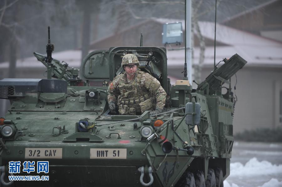 1月19日,在拉脱维亚阿达日军事基地,美军士兵参加换防仪式。当日,驻拉脱维亚美军在阿达日军事基地举行换防仪式,拉脱维亚国防部长韦约尼斯、武装部队司令格劳贝和美国驻欧洲陆军司令部指挥官弗雷德里克·本·霍奇斯中将出席了仪式。去年4月,在乌克兰危机发生后,为了加强北约在波罗的海地区的军事力量,美国向拉脱维亚和其他波罗的海国家派驻了部队。此次换防是美军在拉驻扎以来的第三次。新换防部队由美国第二骑兵团的170名士兵组成,在拉期间他们将执行“大西洋决心”行动任务,驻扎期将于今年3月底结束。新华社记者郭群摄