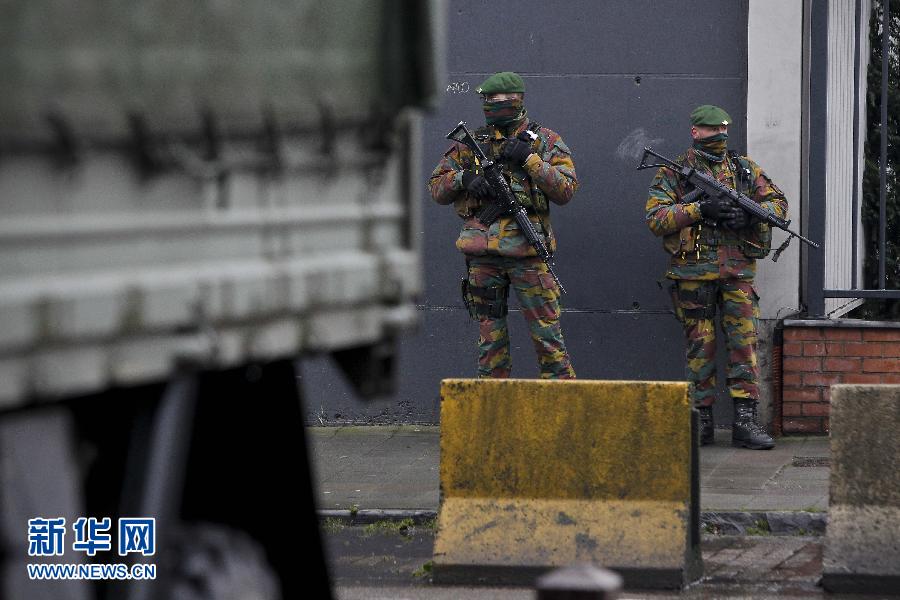 1月19日,比利时军人在首都布鲁塞尔的犹太学校外警戒。比利时于17日开始在首都布鲁塞尔、北部城市安特卫普以及韦尔维耶等地的敏感地点部署150名军人加强反恐。第二批共150名军人将于本周陆续在全国重点城市的政府机构、欧盟机构、犹太机构等地点进行部署,参与反恐任务的军人将达到300人。 新华社记者 周磊 摄