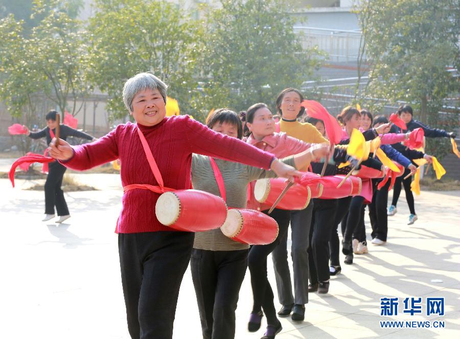1月19日,江西省峡江县由老年妇女自发组织的“婆婆”腰鼓队加紧排练,为春节期间给乡亲们演出做准备。 新华社发(曾双全 摄)
