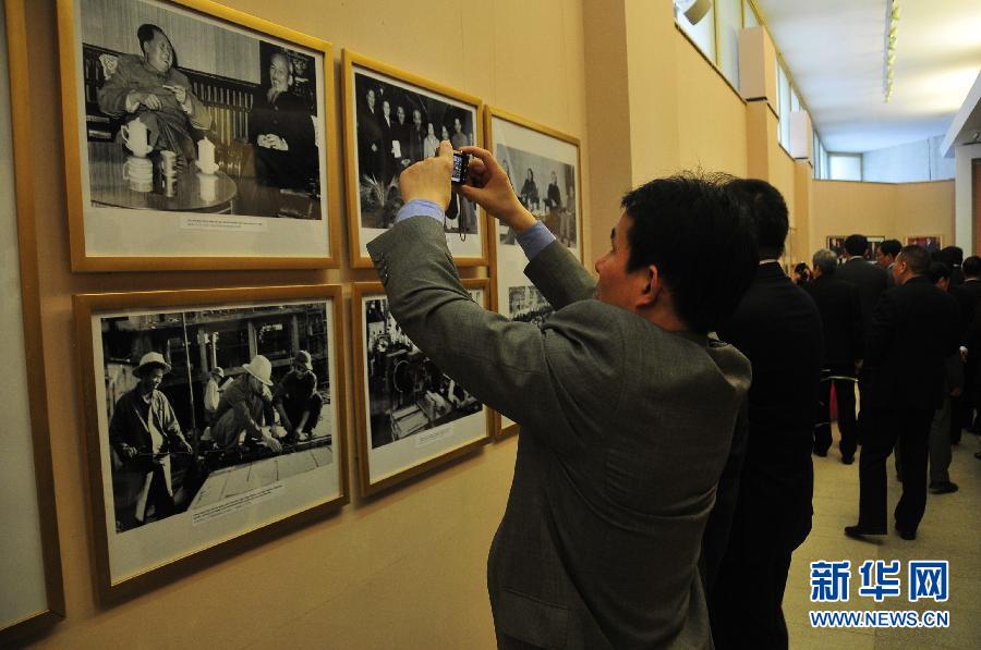1月19日,在越南首都河内,参观者在中越建交65周年图片展上拍照。当日,中国驻越南大使馆和越南胡志明博物馆在越南首都河内联合举办“纪念中越建交65周年图片展”,展出了有关中越交往的120多幅图片和许多实物。新华社记者章建华摄