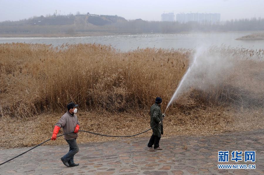 1月17日,管理站工作人员在黄河湿地周边开展消杀工作。