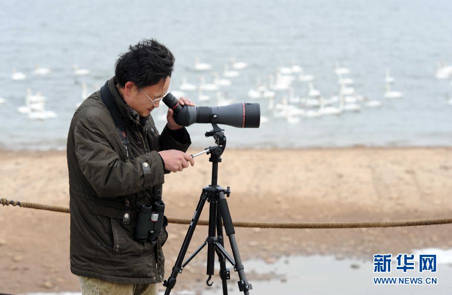 1月17日,三门峡野生动物救护站工作人员在观察鸟类动向。