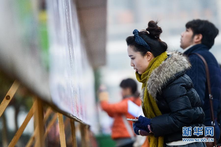 1月18日,在安徽艺术职业学院,考生在查看考试日程安排。当日,2015年安徽省外院校在皖设点艺术专业考试报名工作在安徽艺术职业学院进行。此次艺术专业考试从1月20日开始持续至2月8日。新华社记者 张端 摄