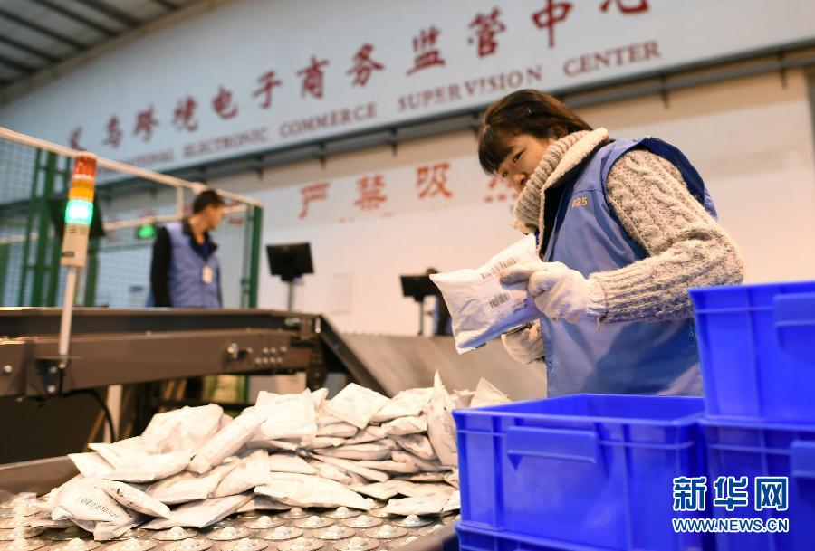 1月13日,在义乌跨境电子商务监管中心,工作人员扫描发往境外的电商包裹。近年来,依托实体市场和产业链优势,浙江义乌跨境电子商务呈现良好的发展态势,已成为市场采购贸易之外新的外贸增长点。 2014年年底,浙江义乌跨境电子商务监管中心正式启用,标志着义乌跨境电子商务出口试点全面开展。据义乌海关介绍,该监管中心占地1.3万平方米,其中操作场地5000平方米,目前已有多家大型跨境电商入驻。新华社记者韩传号摄