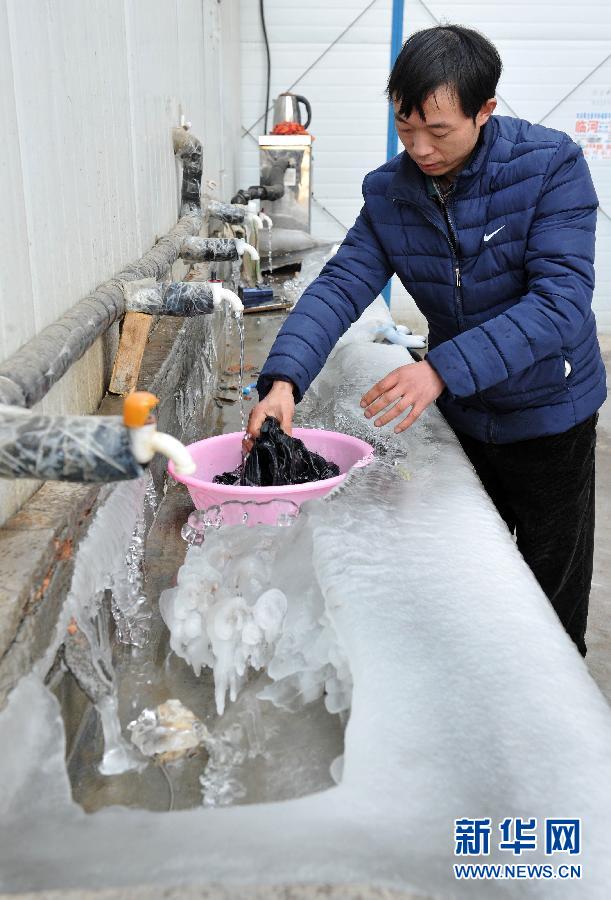 1月12日,工人何文学在工地的水槽洗衣服。由于天气寒冷,水槽已经结上了厚厚的冰。新华社1月1日播发《他们,在讨薪囧途上迎来新年》稿件后,引起各界关注,1月9日、10日,坚守在宁夏银川市鼎辉时代城二期项目工地上讨薪2个多月的部分工人领到了属于自己的报酬。 1月12日,记者来到工地上回访时发现,一些领到工钱的工人已经陆续返乡,仍有近10名还没有领取或没有领完工钱的工人在工地上坚守。由于缺少暖气和取暖设备,工地上和工棚内异常寒冷,几位妇女甚至卧病在床。新华社记者彭昭之摄