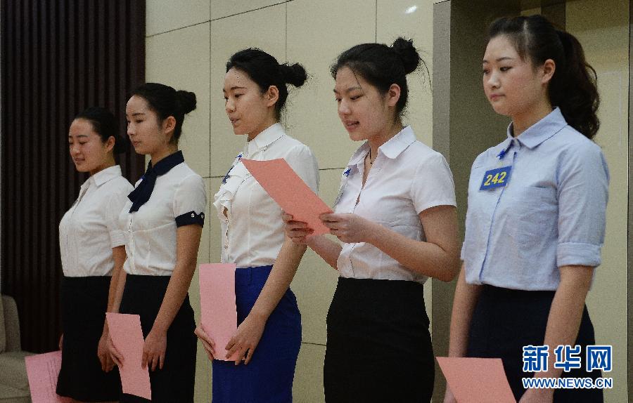 1月17日,参加空中乘务类考试的考生在西安航空学院考点进行语言类考试。当日,2015年陕西省普通高校招生音乐、舞蹈、空中乘务类专业联考开考,考试将持续3天。 新华社记者 刘潇 摄