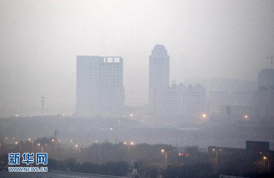 1月17日,在广西秀厢大道,雾霾笼罩下的城市一片朦胧。从1月13日起,广西南宁出现雾霾天气。据气象部门分析,本轮空气质量变差是由于缺少冷空气和雨水,导致污染层堆积所致。 新华社记者 周华摄