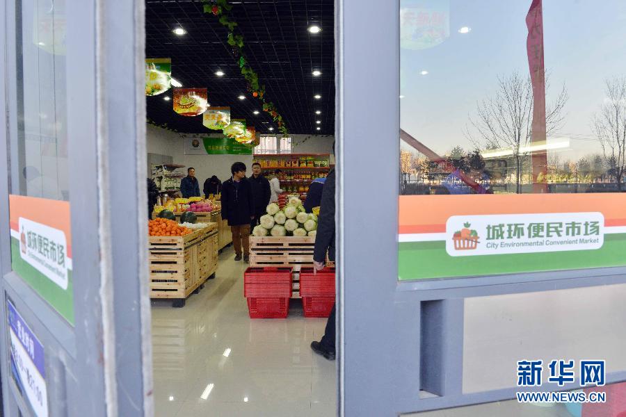 当日,由呼和浩特市政府投资建设的3家“城环”便民市场开门迎客。这是该市打造“10分钟便民生活圈”的重要举措之一。便民市场位于居民生活区内,居民在这些市场里可购买到蔬菜、水果、肉禽蛋、米面油等食品,还可办理快递收发业务。常见的蔬菜水果从产地和大型批发市场统一采购,实施进货、运输、销售一条龙模式,通过减少中间流通环节,降低零售价格。 新华社发(王正 摄)