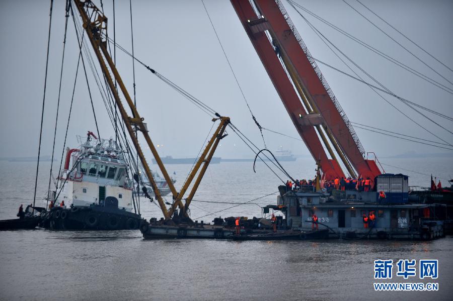 1月17日,搜救人员登上打捞出水的沉船。据江苏海事局消息,截至当日上午10时,福北水道沉船事故已确认造成21人遇难,另有3人获救、1人失踪。目前,搜救人员仍在船舱里以及长江上下游水域全力搜救这名失踪者。新华社记者 沈鹏 摄