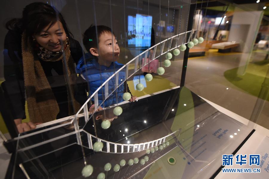 1月18日,一名家长陪伴孩子在探索发现展馆参观。当日,集科普教育、科技交流、休闲旅游为一体的综合性科技馆——辽宁省科学技术馆在沈阳开馆。整个科技馆占地面积69100平方米,由常设展览、短期展览、科普特效影院、培训实验室等项目组成。新华社记者 潘昱龙 摄