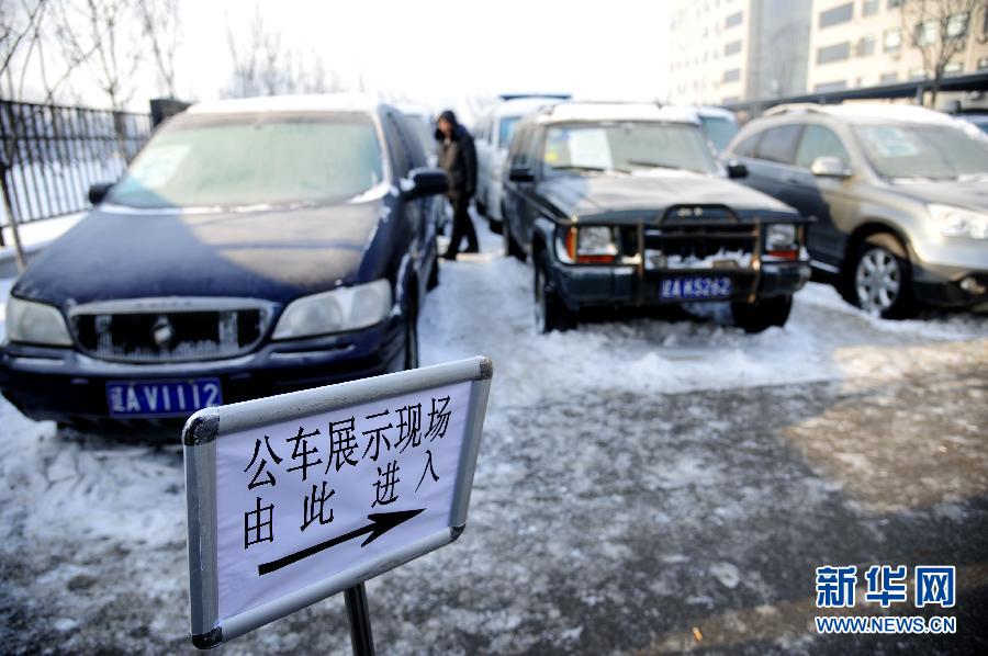 1月20日,有购车意向的市民在车辆停放处查看准备拍卖的公务车车况。沈阳市浑南区第三批涉及全区70余个行政事业单位的106台公务用车,将于1月23日委托沈阳产权交易所进行网上竞拍,车型包括奥迪、丰田等品牌。据悉,2014年,沈阳产权交易所共处置沈阳行政事业单位车辆305辆。新华社发(张文魁 摄)