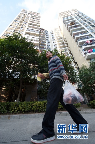 刘记虎提着猪肉来到福州一小区为顾客送货(1月15日摄)。
