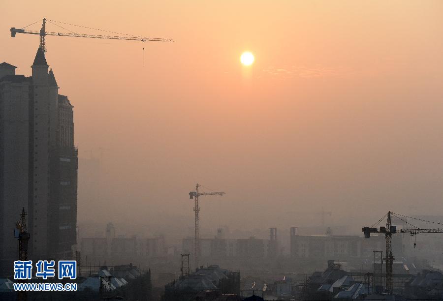 1月17日,在广西秀厢大道,雾霾笼罩下的建筑物一片朦胧。从1月13日起,广西南宁出现雾霾天气。据气象部门分析,本轮空气质量变差是由于缺少冷空气和雨水,导致污染层堆积所致。 新华社记者 周华摄