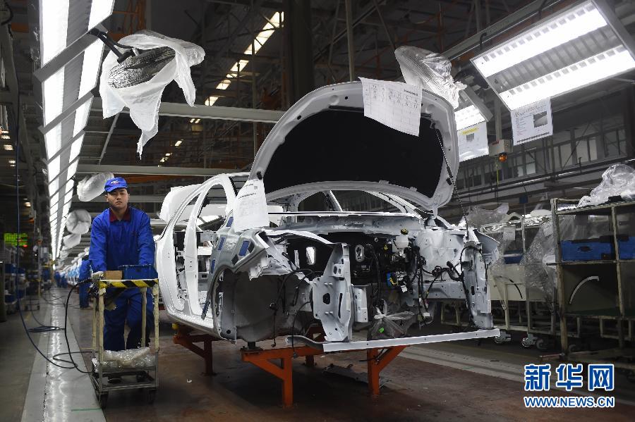 1月14日,工人在奇瑞汽车大连生产基地生产线上工作。 1月20日,国家统计局发布数据,2014年中国经济增长7.4%,其中四季度增长7.3%。 新华社记者潘昱龙摄