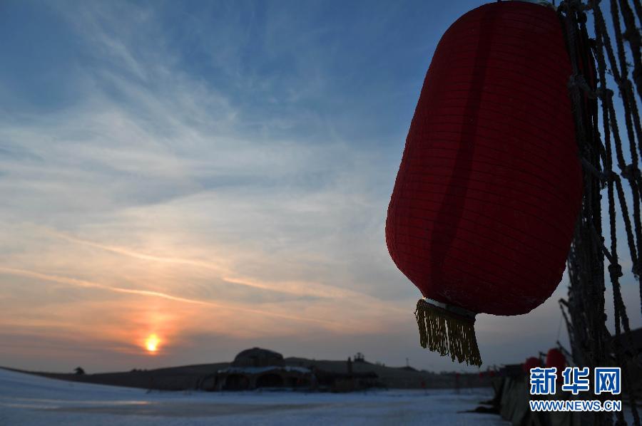这是沙湖景区的黄昏(1月16日摄)。寒冬时节,宁夏沙湖景区湖面封冻,芦苇在冬日的微风中迎着夕阳摆动,美轮美奂。 新华社记者 彭昭之摄