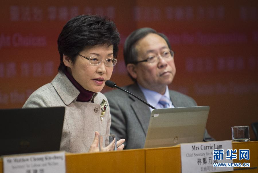 1月15日,香港特区政府政务司司长林郑月娥在记者会上发言。当日,香港特区政府政务司司长林郑月娥在就2015年施政报告中有关人口政策举行的记者会上表示,自1997年香港回归以来,通过“单程证”制度从内地来港定居的人士超过80万,是香港近年人口增长的主要来源,不担心此制度会造成文化差异和矛盾。新华社记者 何靖嘉 摄