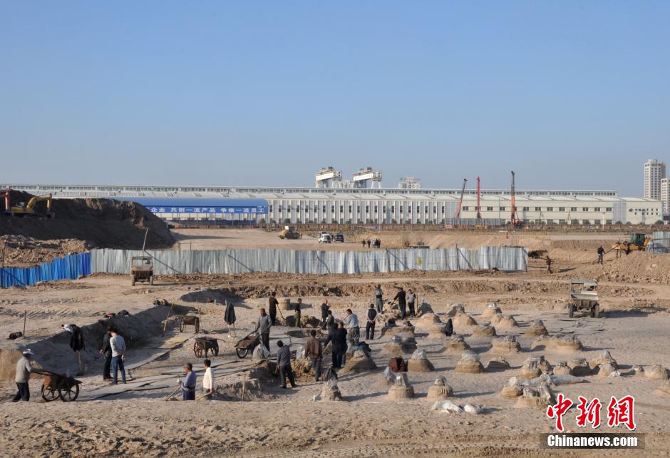 1月15日,陕西省文物局透露,考古人员对位于西安市北郊汉长安城遗址北侧的渭桥遗址发掘后确定,以厨城门外的一座桥为中心在东西600米的范围内,已发现存在5座大型渭河桥梁。考古专家表示,如此高密度的中国古代大型桥梁,在考古学上为首次集中发现。图为厨城门五号桥。中新社发 张远 摄