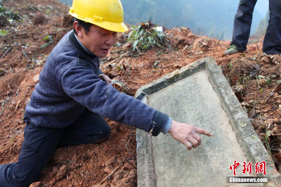图为相关部门工作人员对石碑进行研究。 汪军 摄