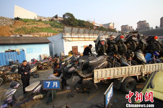 交警对报废机动车集中公开销毁。朱华刚 摄