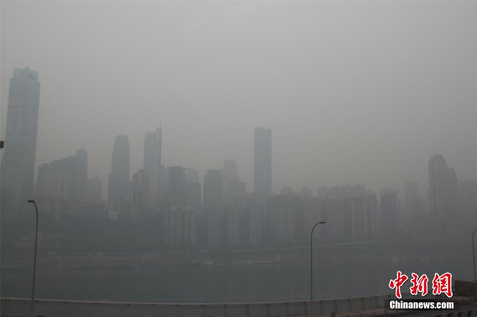 1月23日,雾霾天气笼罩重庆主城。据重庆市气象局显示,重庆“霾黄色预警信号”依旧处于预警状态。戴璐 摄