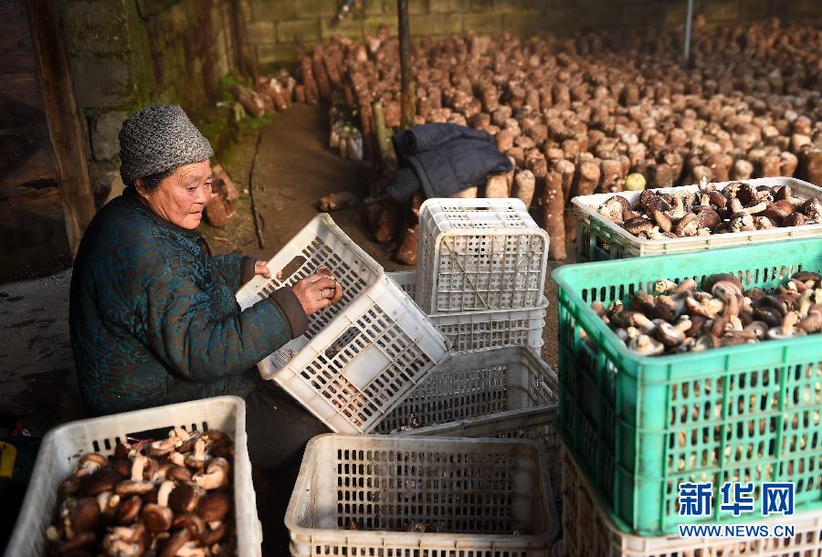 1月23日,兴隆县大杖子乡农民在大棚内挑拣香菇。近年来,食用菌产业逐步发展成为河北省承德市农民发家致富的主导产业之一,不少农民以往的“猫冬”现象正被眼下的“做菌忙”所代替。2014年,承德市食用菌产值超60亿元。预计到“十二五”末,承德市食用菌生产基地规模达到11亿盘(袋),产量100万吨,产值80亿元,基地覆盖130个乡镇6万农户。新华社记者金良快摄