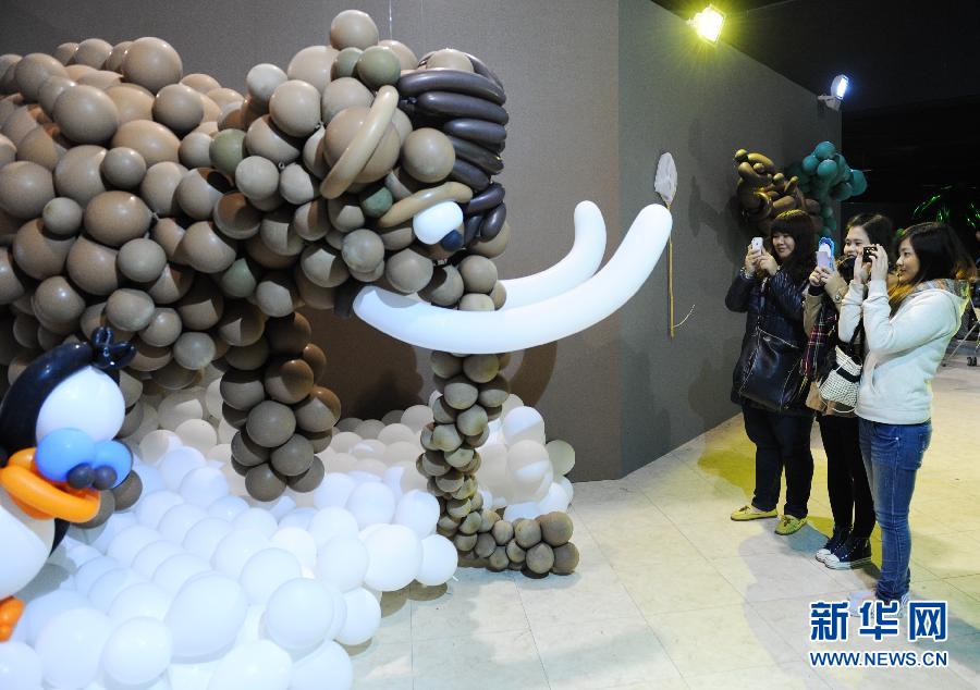 1月23日,在台湾台北,几位观众在参观拍摄“气球人历险记”特展。当日,“气球人历险记”特展在台湾科学教育馆开幕,展览运用30万个气球打造出儿童乐园、海底隧道、各种大型动植物、电影人物等造型,将观众带入一个充满童趣的气球世界。 新华社记者 申宏 摄