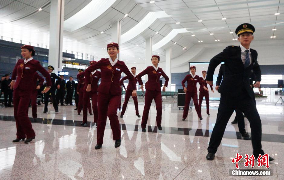 1月26日,在2015年春运来临前夕,兰州西客站的“铁姐”与东航分公司的“空姐”在兰新高铁站兰州西客站进行了服务技能现场大比拼。据了解,兰州西客站借兰新高铁开通满月之际,邀请东航甘肃分公司做客兰州西站,通过岗位互换、交流体验、建立联络方式、提升服务技能等方式,开展首次业务交流活动。杨艳敏 摄