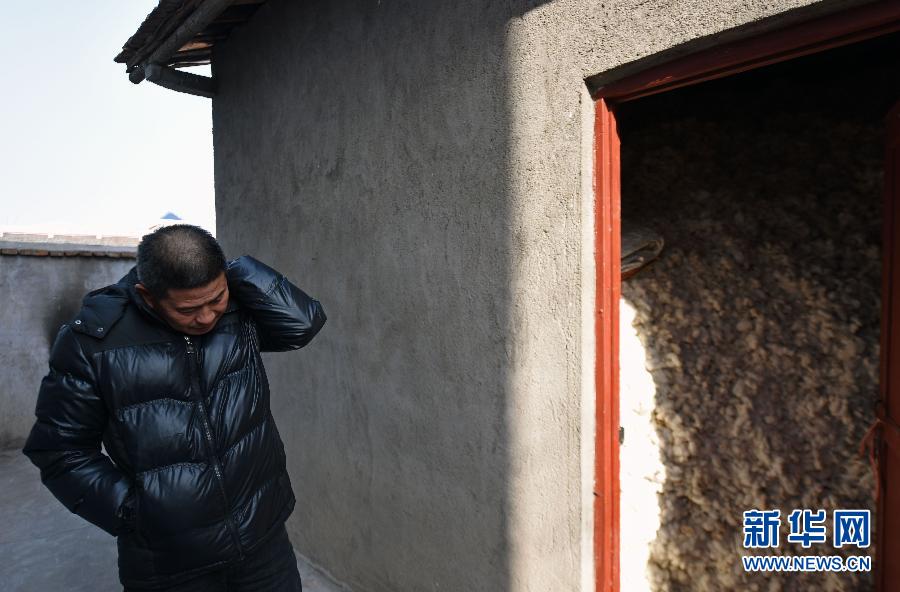 华容县幸福乡棉农史小云站在自家堆放棉花的小仓库边挠头(1月21日摄)。