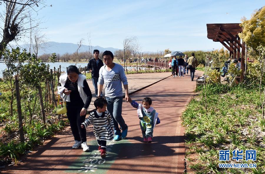 一些昆明市民在东湖湿地公园游玩(1月26日摄)。