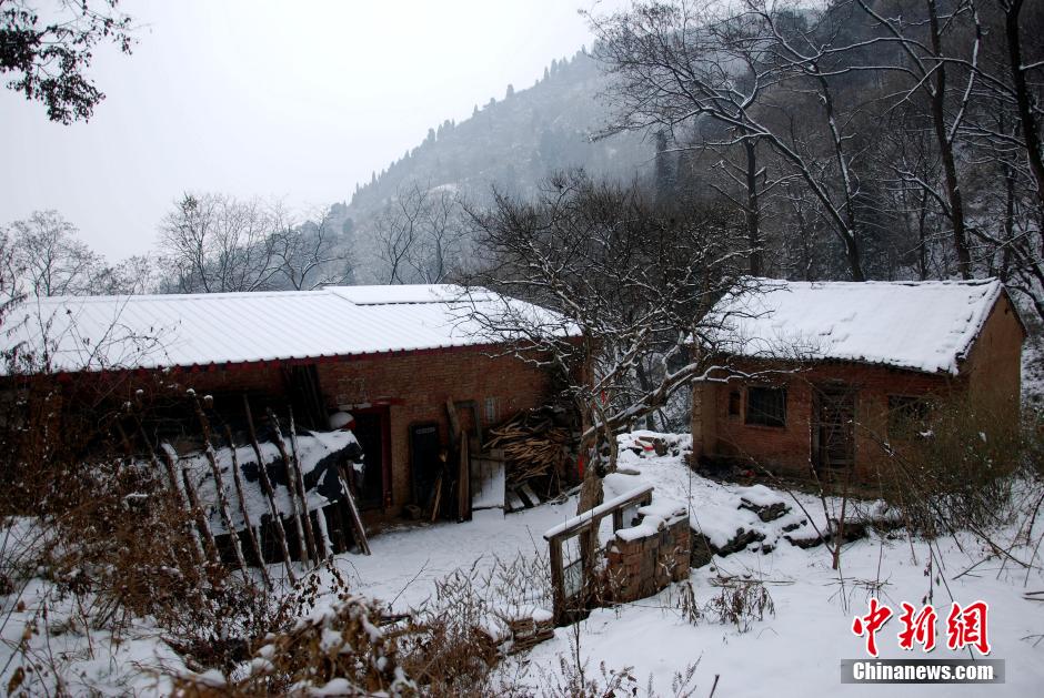 图为83岁王芝霞所住的茅棚,并未通电,亦没有其他的取暖设备。她在这简陋的茅棚里一住就是36年。 李思默 摄
