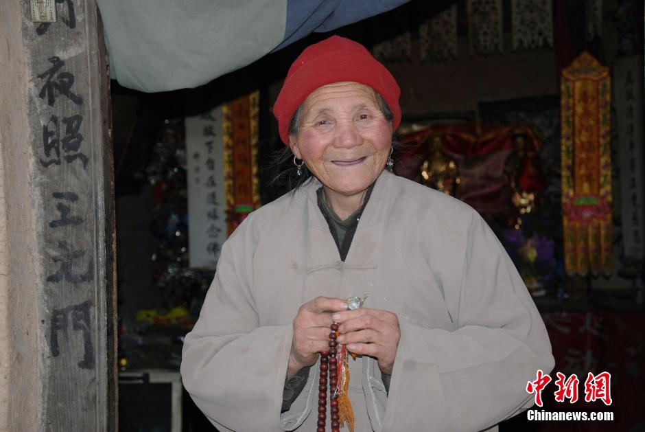 王芝霞是陕西省西安市长安县西柳乡人,43岁在香积寺皈依,在终南山小五台半山腰盖了这座小庙,取名“三圣殿”。 李思默 摄