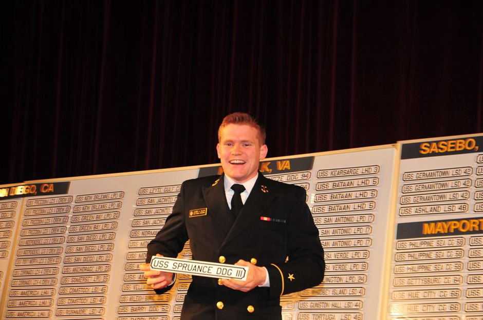 这位海军学员翻到的是美国海军伯克级驱逐舰“斯普鲁恩斯”号。