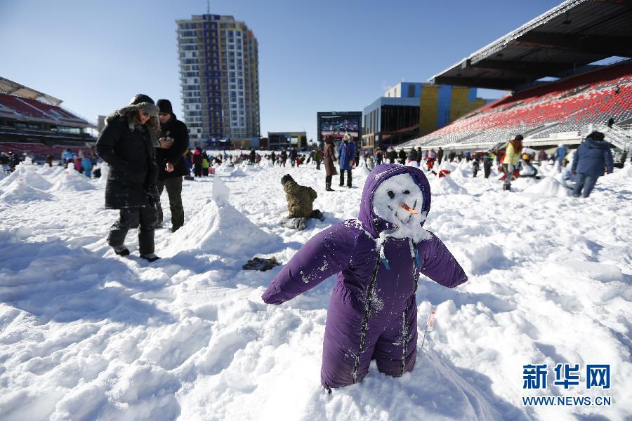 2月1日,在加拿大渥太华道明广场,人们参加堆雪人活动。 当日,近千名成人和儿童来到渥太华道明广场,参加冲击堆雪人吉尼斯世界纪录的活动。根据规定,每个雪人必须有双臂、双眼和鼻子。最终,参与者在1小时内共堆雪人1299个。2011年在美国盐湖城市举行的堆雪人活动共在1小内堆成雪人1279个。新华社发(大卫·卡瓦伊摄)图片来源:新华网