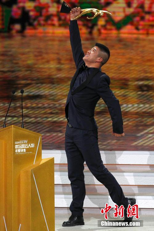 2月1日晚,2014年“CCTV中国体坛风云人物”颁奖盛典在北京举行,极限马拉松选手陈盆滨获得年度最佳非奥运动员奖。 中新社发 富田 摄