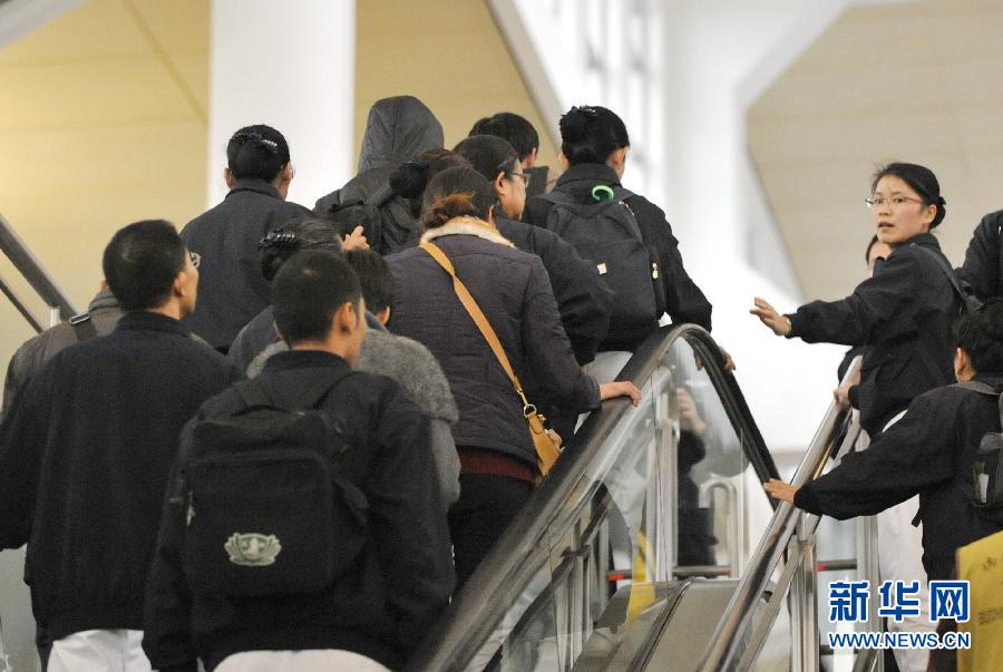 2月5日,赴台大陆乘客家属和工作人员走向厦门高崎机场安检通道。